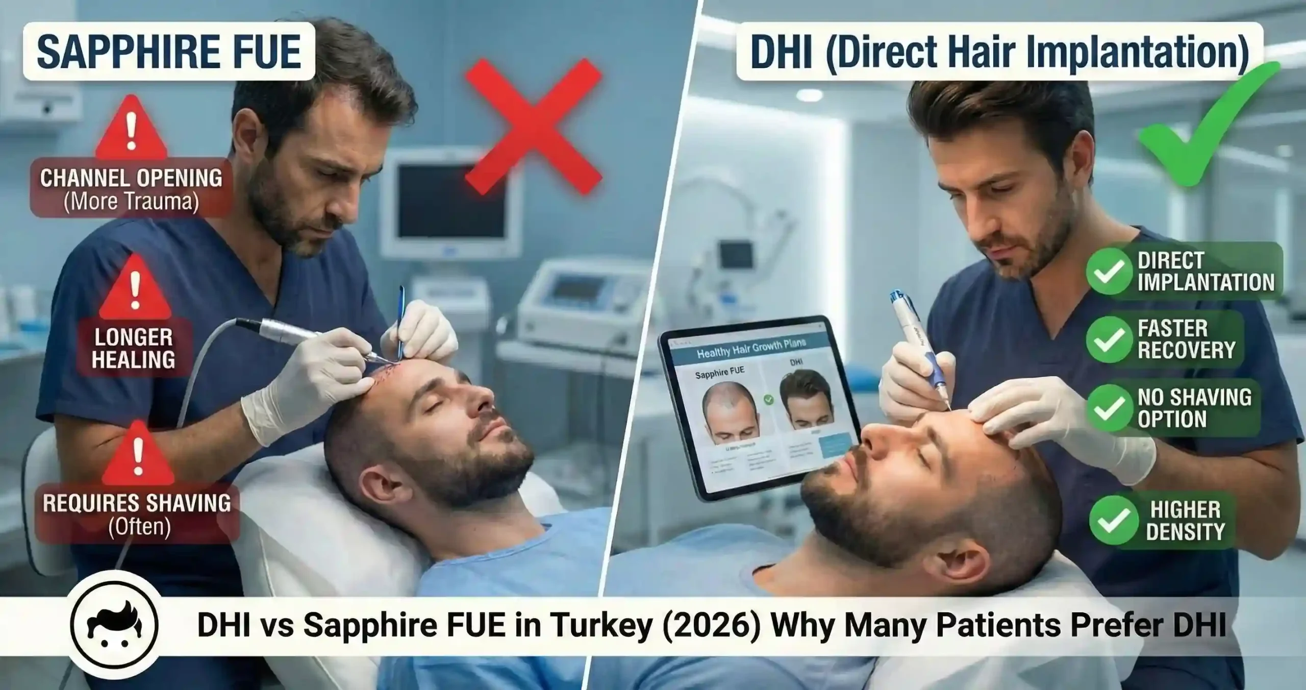 If you’re comparing DHI vs Sapphire FUE, here’s the most important clarification. While the technique is crucial for your result, most patients also carefully evaluate the hair transplant Turkey cost to understand which method fits their budget and restoration goals for 2026.